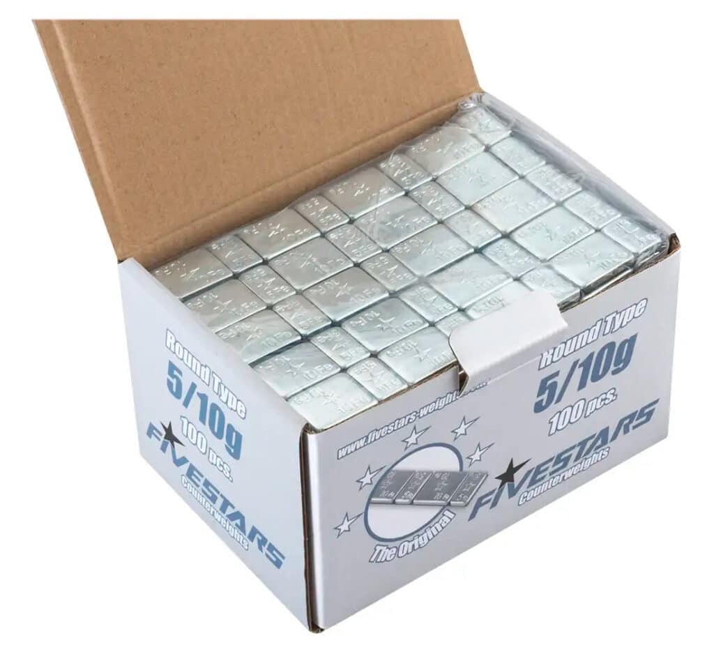 Masses autocollantes avec coins carrés - 5/10g - 1 boîte de 100 pièces